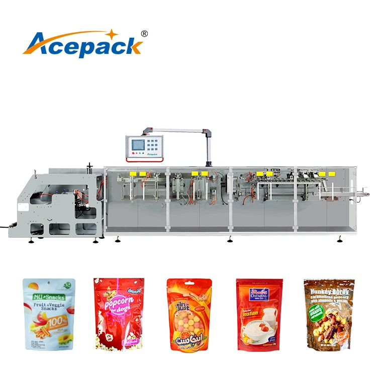 La nostra macchina imballatrice può Imballare il doypack (levar in piedi in su il sacchetto) ed il sacchetto (sacchetto piano). La funzione facoltativa comprende l'aggiunta la chiusura lampo, del becco, facenti il sacchetto a forma di, ecc.